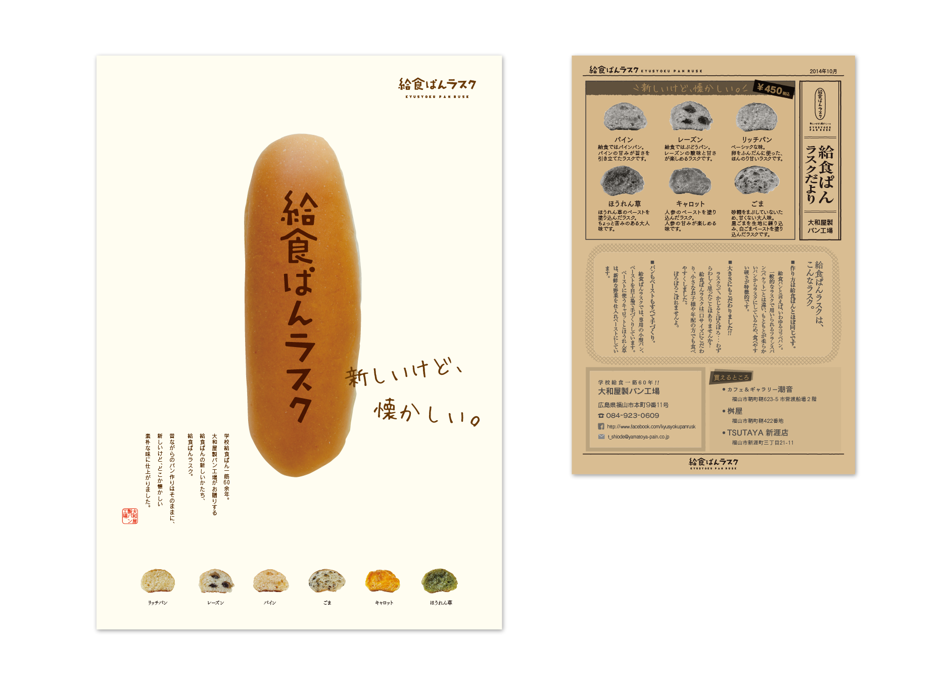 給食ぱんラスク 2018.01.22 Works 広島県福山市 クライアント/大和屋製パン工場 オリジナル商品の開発 企画 / コンセプト / ロゴ / パッケージ / ポスター / フライヤー « 前へ Works 次へ » この記事のあとによく読まれています! タイコウハウジング様logo 広島県福山市/尾道市 admin 二つ折り完成見学会チラシ 広島県福山市/尾道市 admin andrea ferii portfolio 広島県尾道市 admin 刷りグラフィロゴ admin